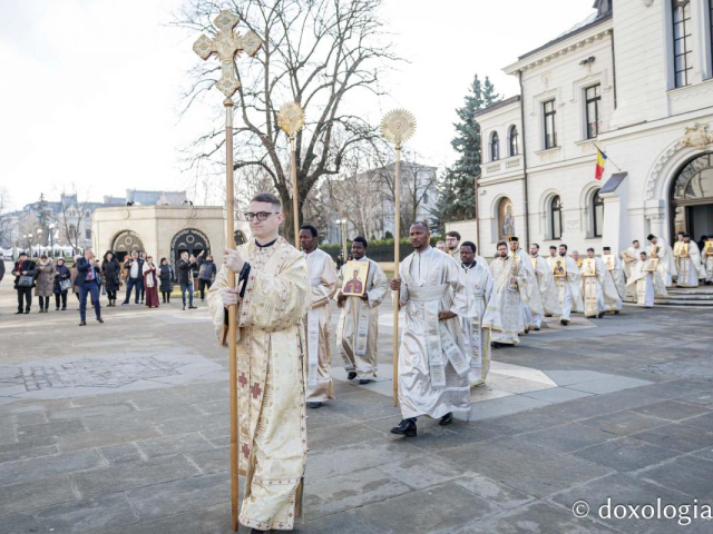 După întâmpinarea ierarhilor de către soborul slujitor la Reședința mitropolitană, clericii au mers în procesiune spre catedrală, purtând în mâini icoane, în amintirea evenimentului din 11 martie 843, de la Constantinopol, care a pus capăt disputei iconoclaste. Aceasta viza reprezentarea în icoane a Mântuitorului Iisus Hristos, a Maicii Domnului, a sfinților și a îngerilor.