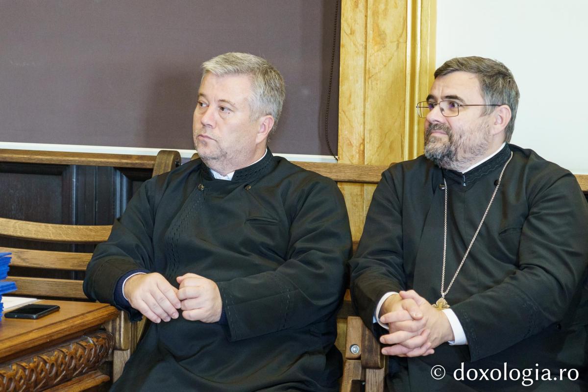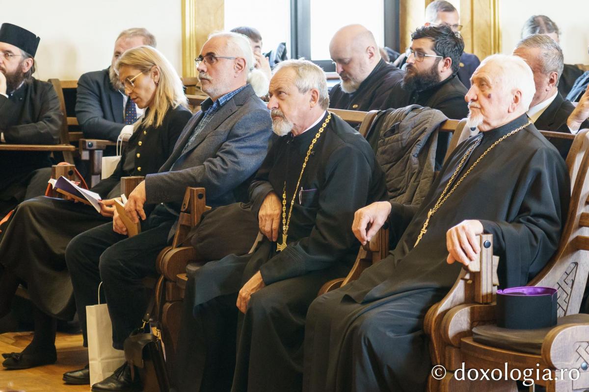 Prima sesiune festivă, desfășurată tot în sala „Iustin Moisescu”, i-a reunit pe foștii și actualii profesori ai Facultății de Teologie din Iași