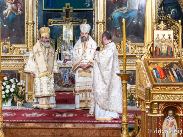 Slujba de astăzi este o mulțumire adusă lui Dumnezeu pentru cei trei mari ierarhi care ne-au lăsat o moștenire, adevărul credinței pe de o parte, pilda vieții lor pe de altă parte, viață de credință, viață de biruință, pentru că în ei s-a împlinit cuvântul pe care Domnului: „Îndrăzniți, Eu am biruit lumea”. Au biruit minciuna lumii, întunericul lumii, înstrăinarea lumii de Dumnezeu. Sărbătoarea de astăzi îi prăzunește pe cei ce sunt ocrotitori facultăților teologice, seminarilor teologice, pentru că s-au făcut pildă celor ce vor să-L cunoască pe Dumnezeu, studiind și aplicându-se asupra cuvintelor inspirate de Dumnezeu, în teologia Sfinților Părinți. Părinții profesori au fost împreună cu noi și această sărbătoare, care este deopotrivă a profesorilor și a studenților, este și pentru noi o sărbătoare de unire a celor ce slujim lui Dumnezeu, deopotrivă ierarhi, preoți, studenți și credincioși.