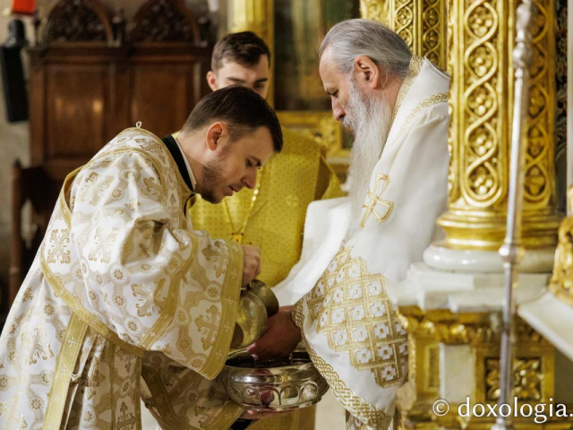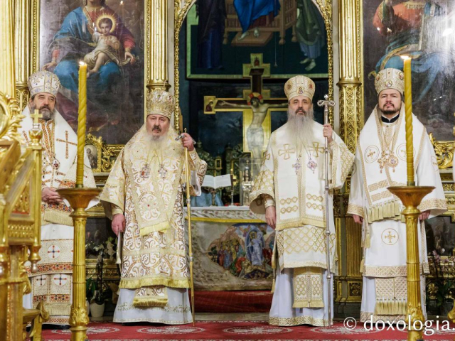 Dumnezeiasca Liturghie a fost oficiată de Înaltpreasfințitul Părinte Teofan, Mitropolitul Moldovei și Bucovinei, dimpreună cu Înaltpreasfințitul Părinte Petru, Mitropolitul Basarabiei și Exarh al Plaiurilor, cu Preasfințitul Părinte Veniamin, Episcopul Basarabiei de Sud, și cu Preasfințitul Părinte Nichifor Botoșăneanul, Episcop-vicar al Arhiepiscopiei Iașilor.